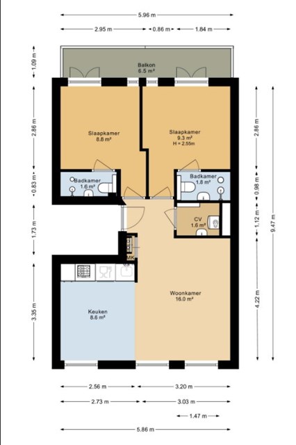 | Aantal slaapkamers: | 2 |
