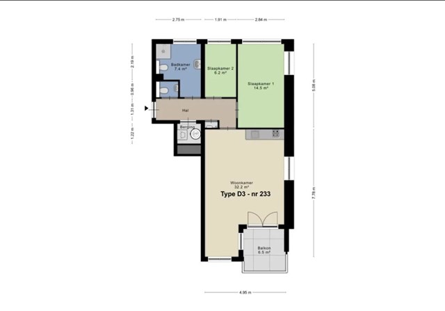 3-kamer appartement