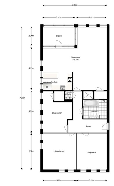 - Aantal badkamers: 1