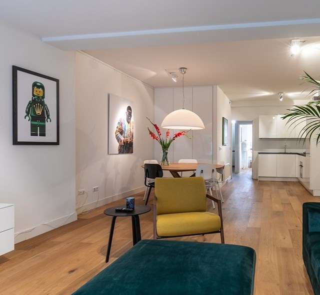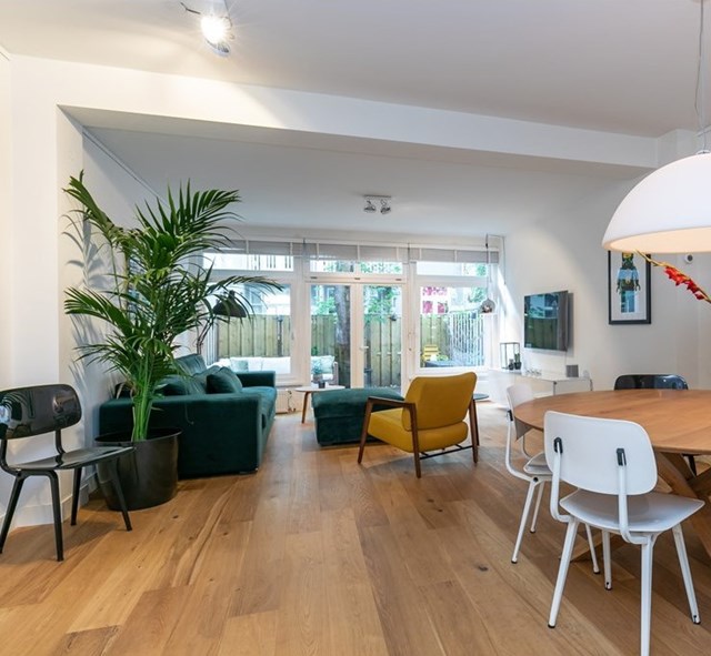 In Amsterdam is een benedenwoning uit 1901 te huur. De woning heeft een oppervlakte van 70 m2 en bestaat uit 2 kamers. De huurprijs bedraagt € 2650 per maand. De borgsom bedraagt 2 maanden huur.